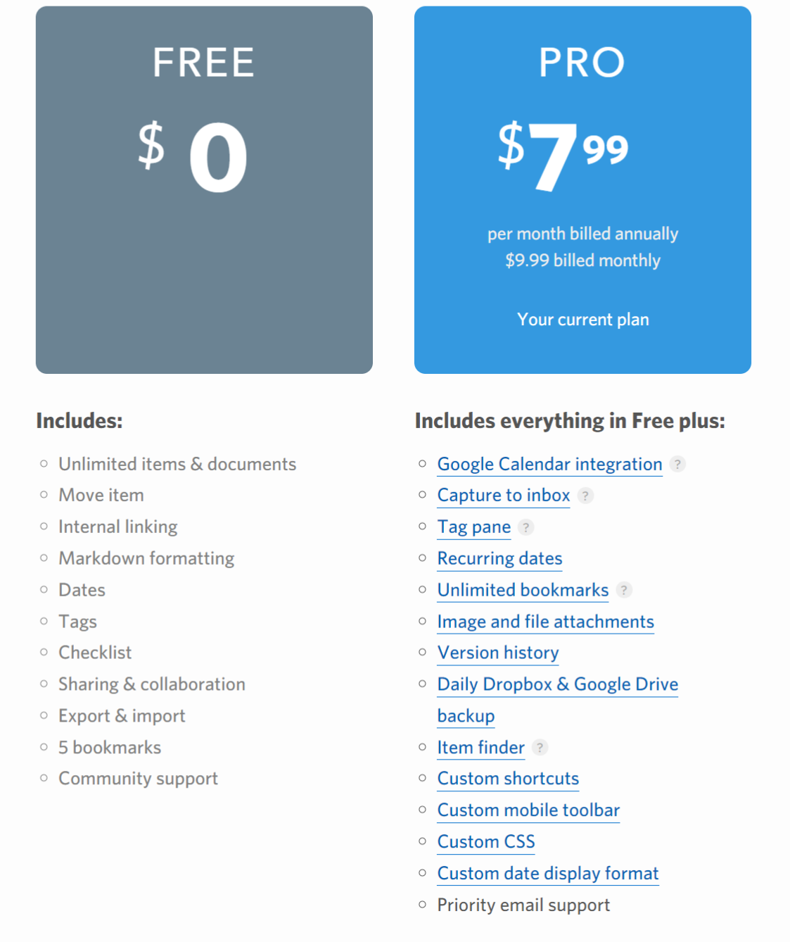 하지만 보시다시피 한 달에 $7.99를 내면 다양한 기능이 추가됩니다. 가장 유용한 기능은 이미지와 파일 업로드예요! Dynalist에 이미지와 파일 업로드를 하고 싶으시다면 프로버전으로 업데이트를 하는 것이 좋습니다.