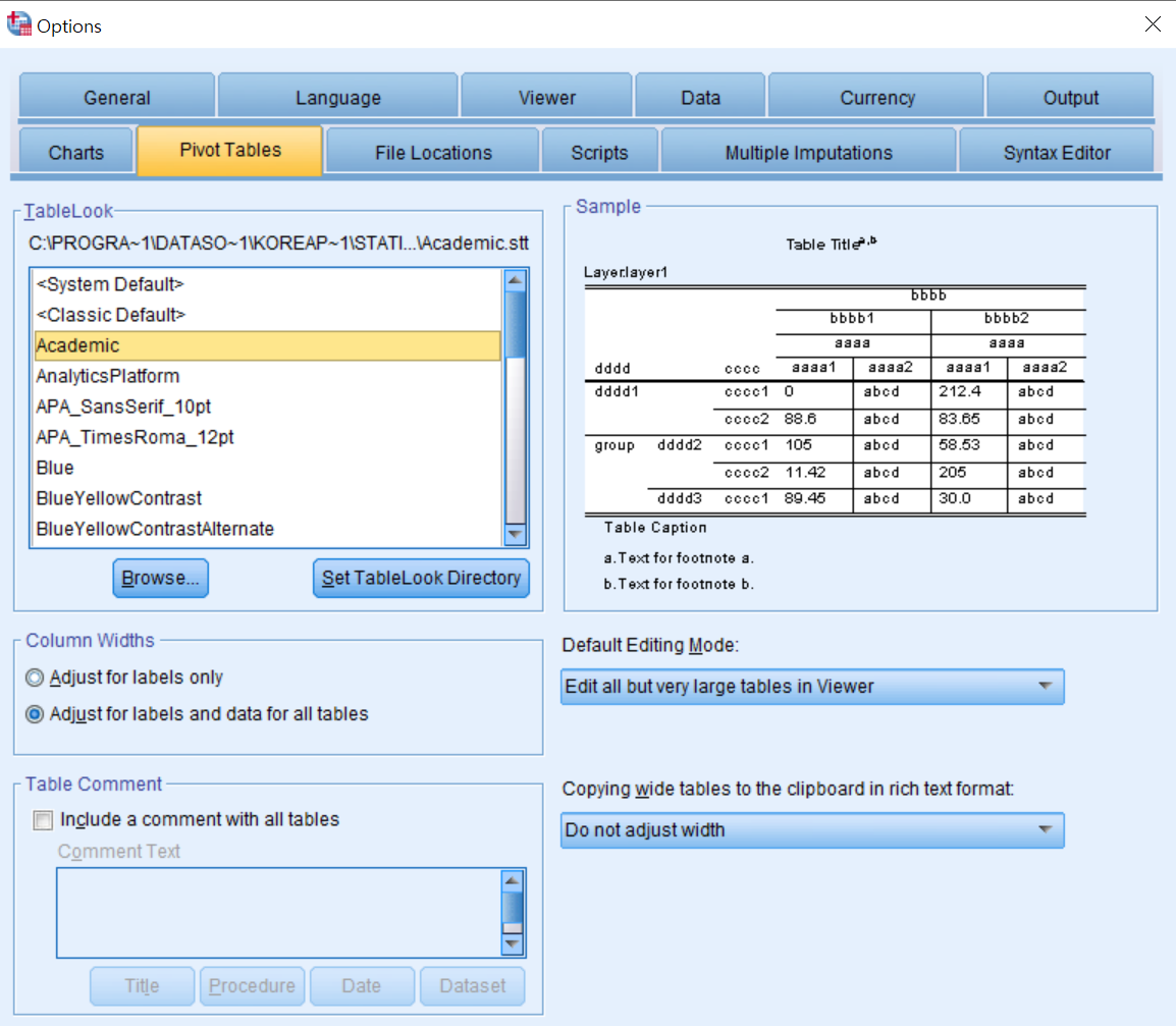 SPSS 표 모양을 학술 논문 형식으로 바꾸는 방법
