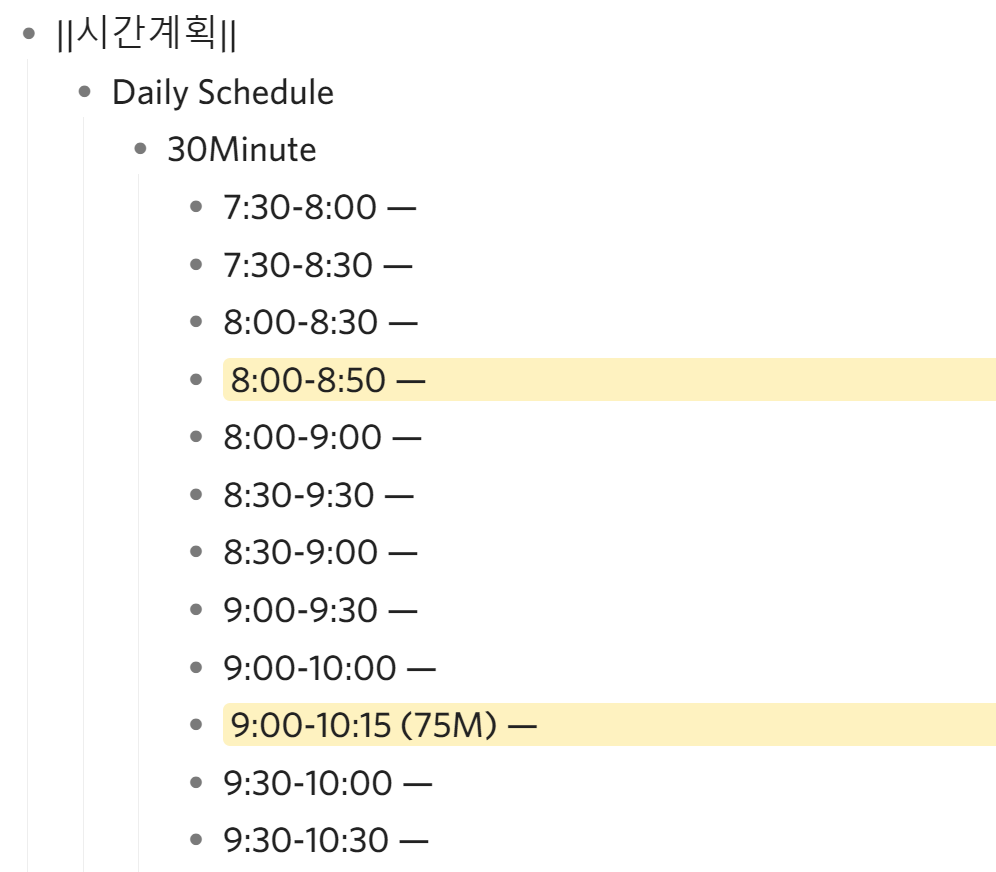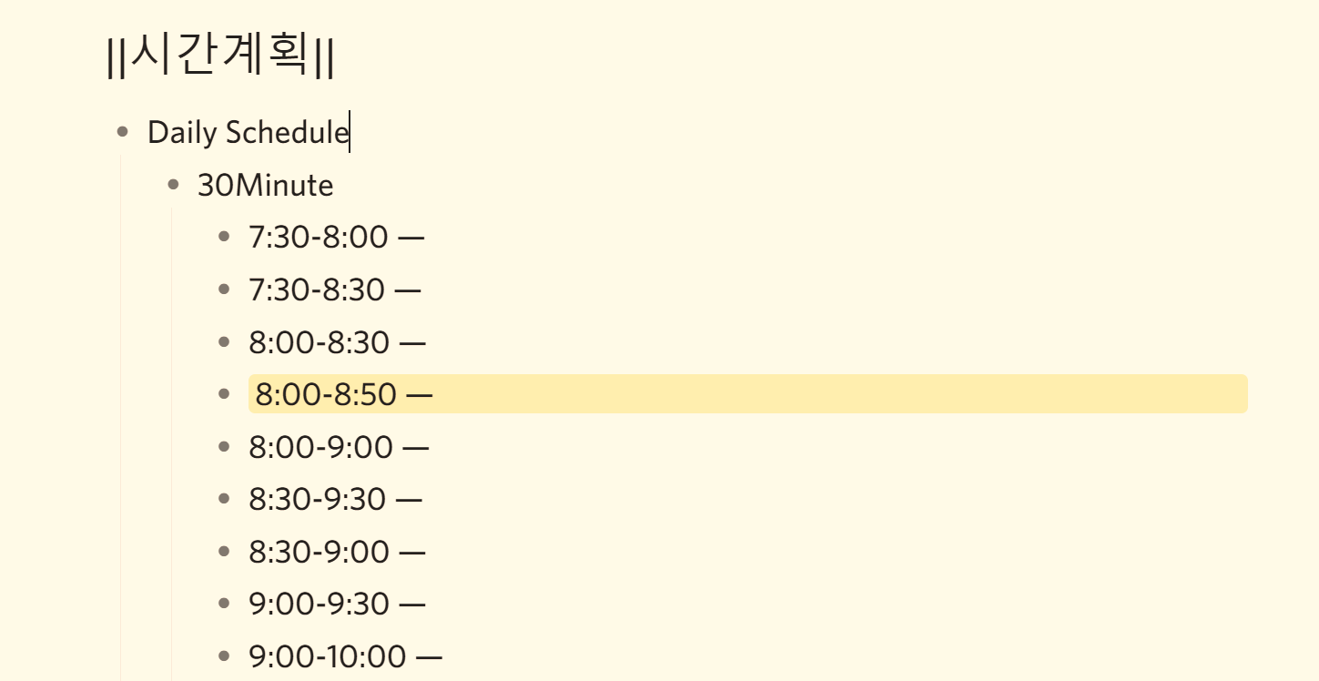 저는 주로 시간 계획표를 템플릿으로 만들어 놓고 매일매일 가져다 쓰고 있습니다.