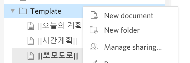 새로운 문서를 추가해서 자주 쓰는 형식들을 등록해두세요. 팁을 드리면 검색하기 좋은 sign을 제목에 추가해 두시는 것이 좋아요. 저 같은 경우는 " || "를 추가해 두었습니다. 이유는 이따가 설명드릴게요!