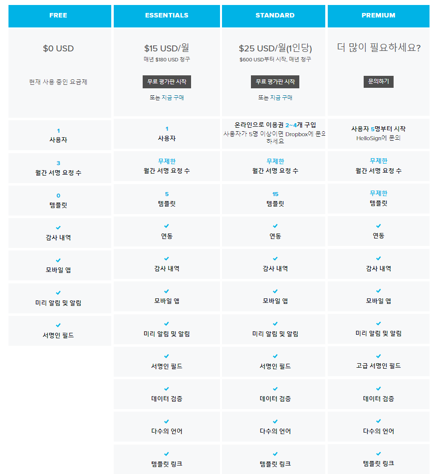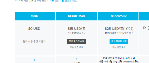 다만 템플릿 기능은 사용이 불가하군요. 그리고 링크를 통한 전송이나 대량 전송도 힘들어요. Essential이나 Standard를 하더라도 한 달 무표 평가판을 사용해볼 수 있습니다. 바로 취소가 가능하니 참고해주세요!