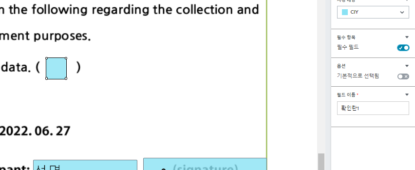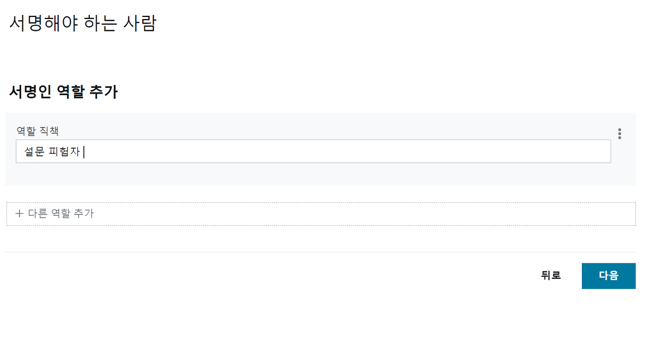 우선 처음에 서명인 역할 추가를 하라 해서 설문 참여자라고 적고 넘어갔습니다.