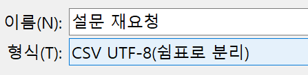 그런데!! 저장할 때 꼭 UTF-8 쉼표로 분리 이 기능으로 하면 인식이 안되더라고요... 홈페이지 설명에는 CSV로 해서 문제가 있으면 UTF-8로 하라고 하던데.. 저는 그냥 기본 CSV로 했습니다.