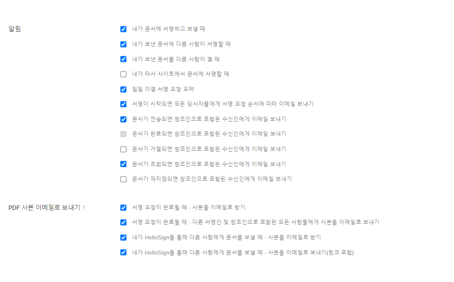 이후 메시지와 함께 서명인에게 이메일을 전송할 수 있습니다.