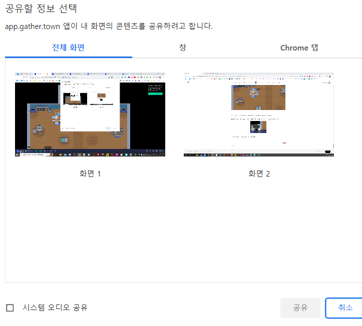 참고로 공유할 때 시스템 오디오 공유를 누르면 공유된 컴퓨터에서 나오는 소리도 들려요!
