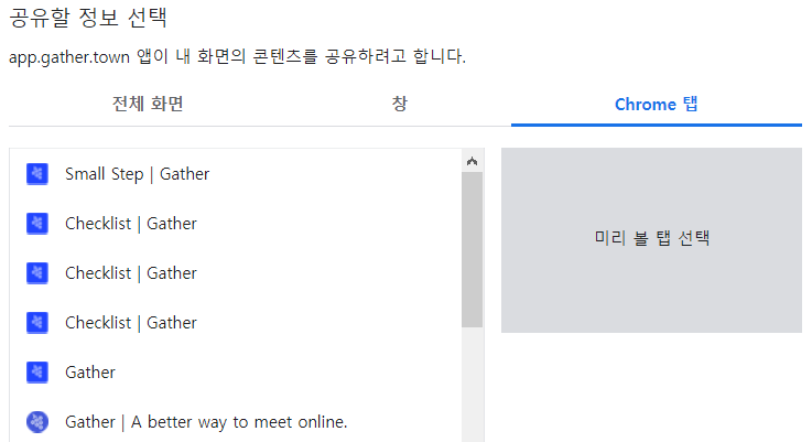 3) 크롬에서 특정 텝만 공유하는 기능까지 있네요!