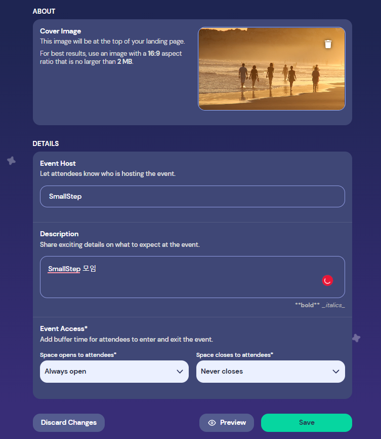 자 여기는 같이 이벤트를 관리할 분들의 이메일을 추가하는 곳이에요! 스킵하셔도 됩니다.