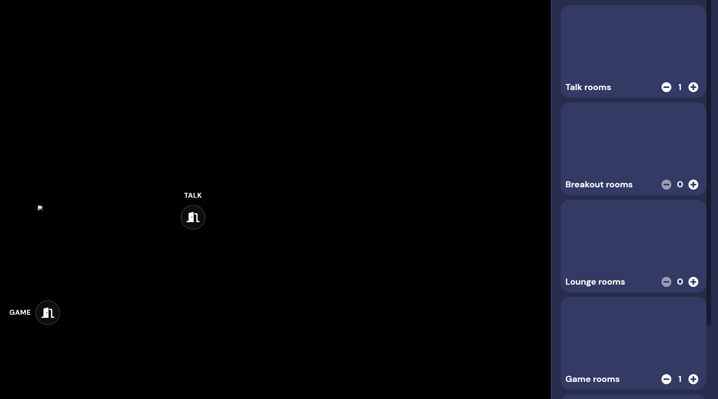 다 만드시면 오른쪽에 개설하고 싶은 방 형태를 클릭하게 되어있어요. 저는 화상미팅이 목적이니 "Talk room"을 먼저 하나 추가했습니다. 이게 타운 형식이라 이거 저거 추가해놓을 수 있어요! 궁금해서 Game rooms도 하나 추가해 보았습니다 ㅎㅎ (나중에 하니 번거로워지더라고요 그냥 talk room 하나만 추가하셔도 될 듯합니다!)