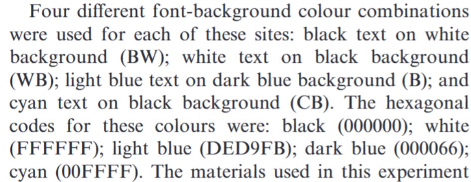 해당 논문은 웹 페이지의 텍스트와 배경 색상에 따라