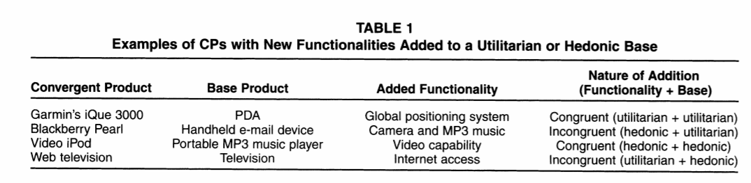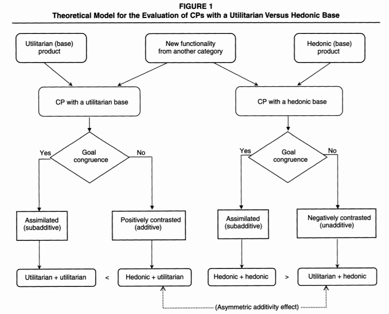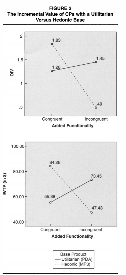 - utilitarian base gain more from adding an incongruent, hedonic functionality than a congruent, utilitarian one,