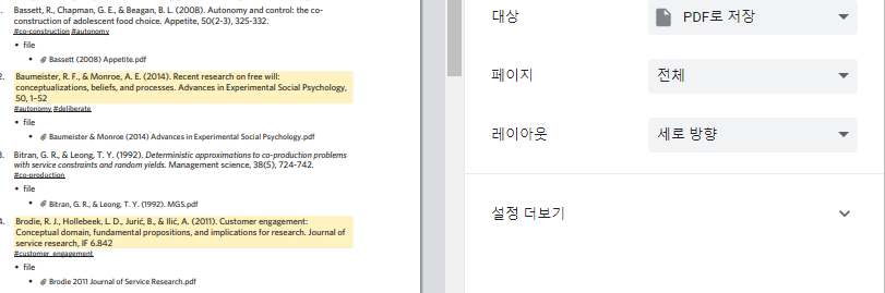 그 상태로 Ctrl+P를 눌러 pdf로 저장을 하면 아래와 같이 저장이 돼요.