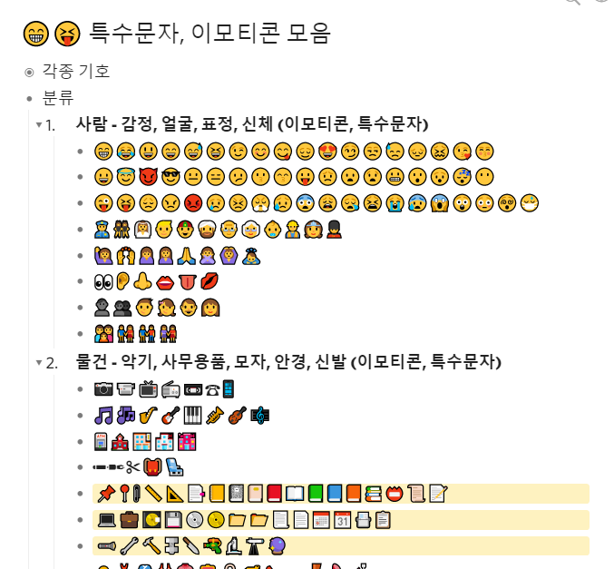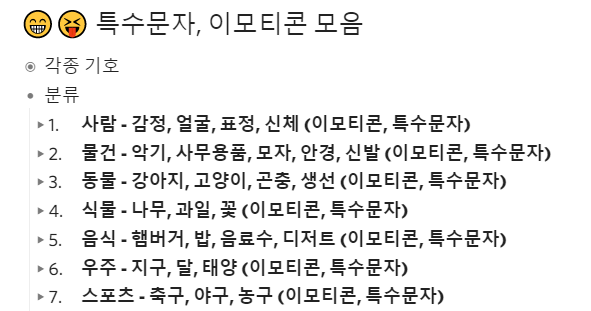 [Dynalist 100% 활용하기]😁 특수문자, 이모티콘 모음 emoticon (다이날리스트, 다이널리스트)
