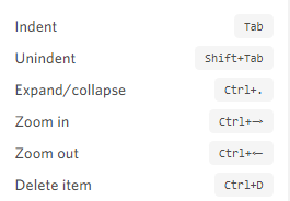 단축키를 몰라도 쓸 만 한데, Dynalist 단축키에 익숙해지시면 활용도가 3~4배는 높아질 거에요! 필수적인 단축키 몇 개 먼저 말씀드릴게요! 너무 귀찮으시면 딱 이 정도만 익숙해지시면 좋습니다!