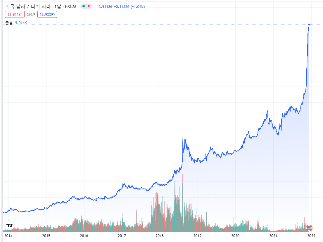 터키 리라화 환율이 미쳐 돌아간다는 소식을 듣고.. 한번 역발상으로 투자를 해볼까? 고민하고 있어요.