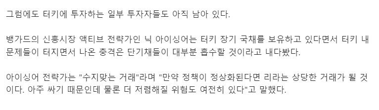 터키 투자에 대하여 검색을 해도.. 참 정보가 잘 안나와요. 정말 투자와 관련된 의견이 거의 없고, 대부분 부정적인데 하나 참고하면 좋은 의견을 찾아 공유드립니다.