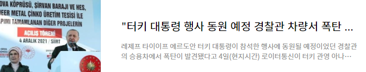 "터키 대통령 행사 동원 예정 경찰관 차량서 폭탄 발견"