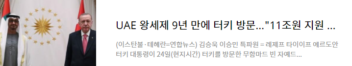 UAE 왕세제 9년 만에 터키 방문…"11조원 지원 펀드 조성"(종합) | 연합뉴스