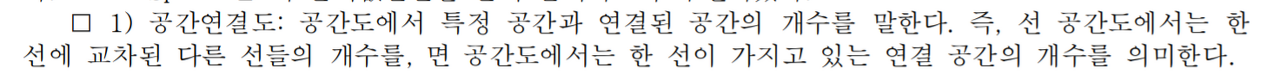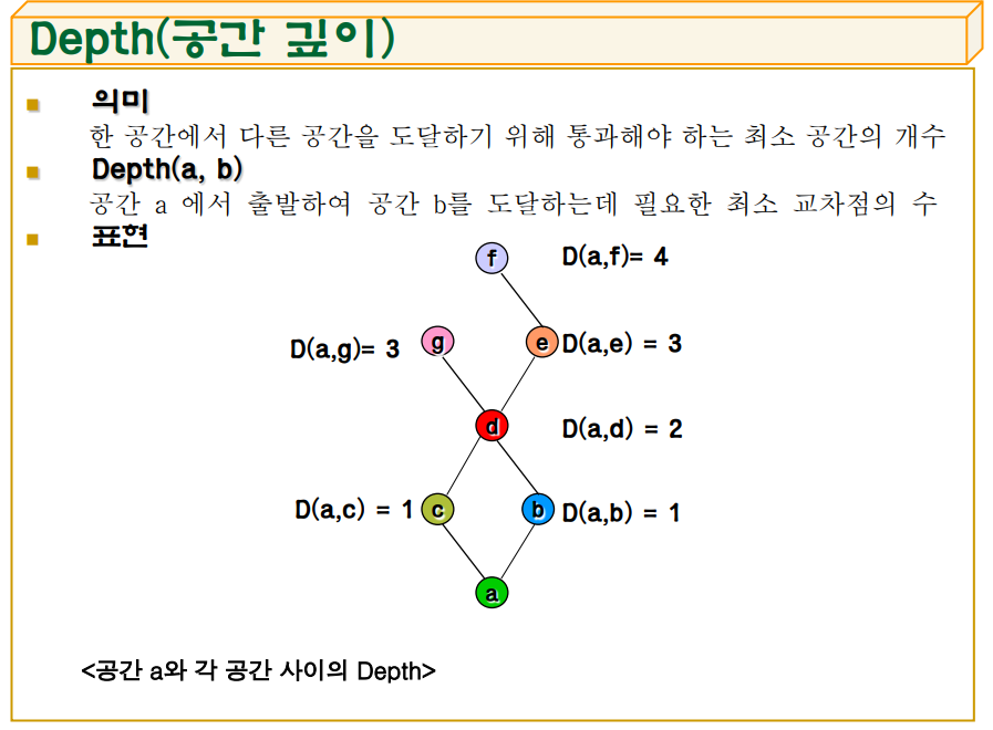 한 공간에서 다른 공간으로 이동하기 위해 거쳐 지나가는 공간의 수를 말하는 것으로 여러 경로가 있는 경우에는 최소의 축선 수를 선택한다.