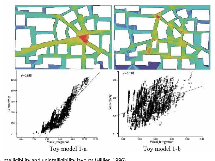 space syntax the measure of intelligibility is obtained correlating connectivity values to global integration values