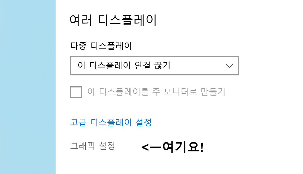 2. 제일 아래에 있는 그래픽 설정을 누르세요!