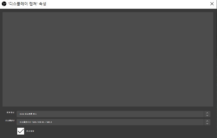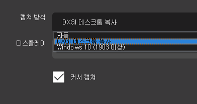 디스플레이 캡처 속성 드가서 캡쳐방식을 DXGI로 바꾸면 간단히 해결됩니다!