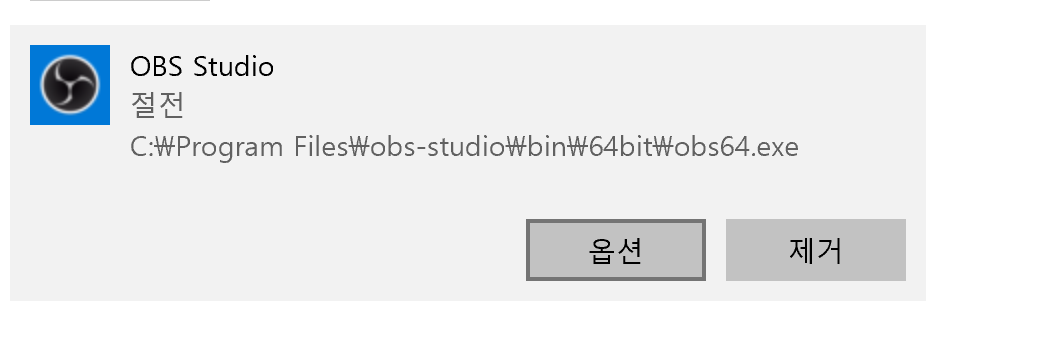 4. 이제는 OBS Studio가 보일거에요 이번에는 옵션을 눌러주세요