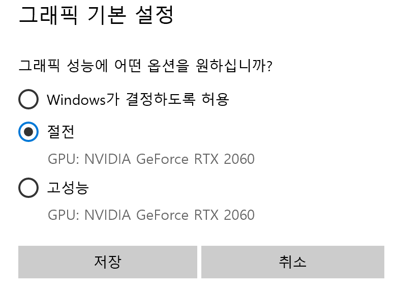 5. 마지막으로 절전을 눌러주세요! 절전으로 해도 안될 경우 고성능을 눌러보세요
